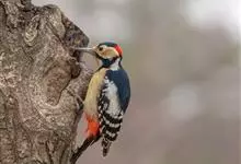 白背啄木鸟共有10个亚种。中等体型,体长25厘米。特征为下背白色,无论雌雄均臀部红色。脚强健,有趾4个,其中2个向前,2个向后,各趾的趾端均具有锐利的爪,巧于攀登树木。尾羽的羽干刚硬如棘,…全部>>