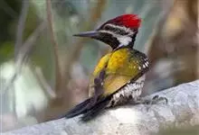 三趾啄木鸟,是啄木鸟科、啄木鸟属的小型鸟类,体长20-23厘米,雄鸟头顶金黄色,雌鸟黑色而具白色斑点。眼至耳覆羽黑色,眼后有一条白色纵纹,颊纹白色,颚纹黑色,甚为醒目。枕和后颈黑色,…全部>>