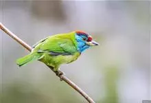 蓝喉拟啄木鸟,是须鴷科、拟啄木鸟属的鸟类。蓝喉拟啄木鸟为小型鸟类,体长20-23厘米。前额至头顶鲜红色,其上有一宽阔的黑色横带,将此红色分为前后二块;头侧、颏、喉蓝色,下喉两侧各具一红色点斑。…全部>>