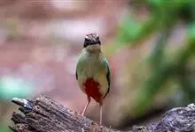 栗头八色鸫又叫锅巴雀,体长为24-26厘米,体重100-135克,是雀形目八色鸫科的鸟类。体型圆胖,尾短,腿长,常在森林底层或低植被中找食无脊椎动物。叫声简单哀婉。…全部>>