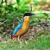 蓝翅八色鸫是雀形目八色鸫科的鸟类。体长17-20厘米,体重类约48-70克,体型圆胖,尾短,腿长,以身体具有红、绿、蓝、白、黑、黄、褐、栗等鲜艳夺目,丰富艳丽的色彩而得名,是很有观赏价值的鸟类。主要…全部>>
