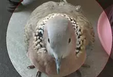 珠颈斑鸠,别名花斑鸠、珍珠鸠、花脖斑鸠、鸪鹪,是鸠鸽科副斑鸠属鸟类。体型中等,体长27~34cm,体重120~205g,雌鸟和雄鸟羽色相似,但雌鸟不如雄鸟羽色亮泽。珠颈斑鸠前额至头顶羽色稍淡,…全部>>