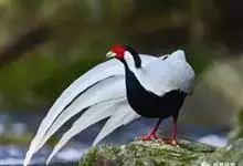 白鹇,是鸡形目雉科鹇属的一种留鸟。雄鸟上体白色并具黑色纹,下体黑色,头顶具黑色长羽冠,尾白而长;雌鸟体型较小,以橄榄褐色为主,下体具白色或皮黄色细纹;虹膜褐色,眼周具红色裸皮,喙黄色,脚鲜红色。…全部>>