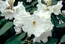 大白杜鹃是杜鹃花科杜鹃花属的常绿灌木,高可达5米。幼枝绿色,无毛;叶厚革质,长圆形或圆状倒卵形,先端钝或圆,基部楔形;总状伞形花序顶生,花序轴疏生白色腺体,花梗粗,具白色有柄腺体,冠宽漏斗状钟形,…全部>>