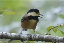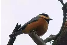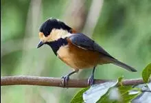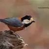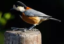 杂色山雀,是山雀科山雀属的一种动物。体重17-18克,体长125-140毫米。雌雄羽色相似。额、眼先、耳羽至颈侧乳黄色,头顶至后颈黑色,后头中央有一白斑。上背栗色,上体余部及翼蓝灰色。颏、喉黑色,…全部>>