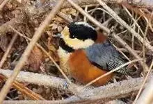 杂色山雀,是山雀科山雀属的一种动物。体重17-18克,体长125-140毫米。雌雄羽色相似。额、眼先、耳羽至颈侧乳黄色,头顶至后颈黑色,后头中央有一白斑。上背栗色,上体余部及翼蓝灰色。颏、喉黑色,…全部>>
