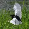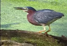 绿鹭:是鹳形目鹭科绿鹭属鸟类。体型小,头顶黑,枕冠亦黑色,上体蝉灰绿色,下体两侧银灰色;前额至后枕及冠羽墨绿色,眼后有一白斑,颊纹黑色;颚纹白色,后颈、颈侧和体侧烟灰色;背部披灰绿色矛状长羽,…全部>>