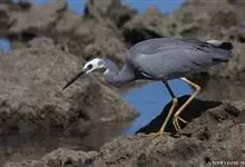 白脸鹭:体长60-70厘米,体重550克。成鸟相对其他鹭科鸟类要小,正如它的名字,很容易通过白脸鹭的蓝灰色身体和独特的白脸来识别。嘴长而尖直,翅大而长,脚和趾均细长,胫部部分裸露,脚三趾在前一趾在后,…全部>>