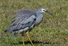 白脸鹭:体长60-70厘米,体重550克。成鸟相对其他鹭科鸟类要小,正如它的名字,很容易通过白脸鹭的蓝灰色身体和独特的白脸来识别。嘴长而尖直,翅大而长,脚和趾均细长,胫部部分裸露,脚三趾在前一趾在后,…全部>>