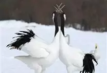 丹顶鹤:是鹤科、鹤属的一种大型涉禽,体长120-160厘米。颈、脚较长,通体大多白色,头顶鲜红色,喉和颈黑色,耳至头枕白色,脚黑色,站立时颈、尾部飞羽和脚黑色,头顶红色,…全部>>