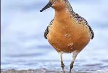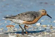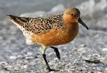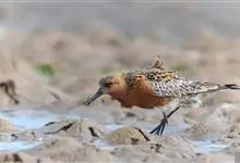 红腹滨鹬,是鹬科、滨鹬属的小型涉禽,体长23-25厘米,嘴较短而直、黑色,脚亦甚短、绿色。体较粗胖。夏季上体灰褐色具黑色中央纹,背具棕栗色和白色斑纹和羽缘,头侧和整个下体栗红色。冬季棕红色消失,…全部>>