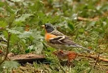 燕雀属小型鸟类,体长14-17厘米。嘴粗壮而尖,呈圆锥状。雄鸟从头至背辉黑色,背具黄褐色羽缘。腰白色,颏、喉、胸橙黄色,腹至尾下覆羽白色,两胁淡棕色而具黑色斑点。两翅和尾黑色,翅上具白斑。…全部>>