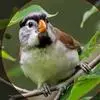 点胸鸦雀是莺科、鸦雀属小型鸟类,体长18-21厘米。头顶至枕橙棕色,嘴橙黄色、短而粗厚,脸皮黄色,耳覆羽和颊后部黑色,眼圈白色。上体棕褐色。颏黑色,其余下体淡皮黄白色,喉和上胸具黑色矢状斑。…全部>>