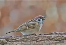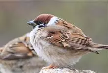 家麻雀:共有13个亚种。是小型鸟类,体长14-16厘米。背栗红色具黑色纵纹,两侧具皮黄色纵纹;颏、喉和上胸黑色,脸颊白色,其余下体白色,翅上具白色带斑。雄鸟与树麻雀的区别在顶冠及尾上覆羽灰色,耳无黑…全部>>