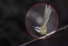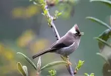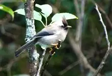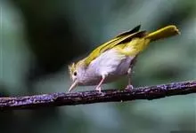白腹凤鹛是绿鹃科、绿凤鹛属的小型鸟类,体长10-12厘米。上体从头到尾黄绿色,有短的羽冠,头顶微具黑色羽轴纹;眼先、眼周,耳羽和下体灰白色,尾下覆羽黄色。虹膜褐色或红褐色,上嘴浅褐色或肉褐色,…全部>>