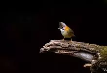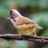 纹喉凤鹛:小型鸟类,体长13-16厘米。头顶和羽冠暗褐色或褐灰色,上体橄榄褐色,飞羽黑褐色,外侧次级飞羽表面橙黄色,构成一块纵形翼斑,极为醒目。颏、喉淡棕白色,具黑色纵纹,腹和尾下覆羽橙黄色。…全部>>
