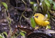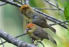 金头穗鹛小型鸟类,体长10~11厘米,是一种黄色小鸟。头顶金黄色有黑色纵纹,眼先黑色,在头、颊和耳羽金黄色的衬托下亦甚醒目。上体橄榄黄色,下体亮黄色,腹和两胁沾绿。…全部>>