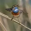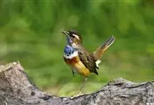 蓝点颏亦称“蓝喉歌鸲”,通称蓝靛颏儿。身体大小和麻雀相似,体长12-13厘米,体重17-18克。头部、上体主要为土褐色。眉纹白色。尾羽黑褐色,基部栗红色。颏部、喉部辉蓝色,下面有黑色横纹。下体白色。…全部>>