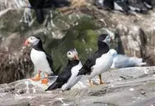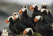 北极海鹦是海雀科的一种海鸟,体长26-38厘米,体重约490克。冠为黑色,脸颊灰色,腹部白色。喙大,为红黑色,腿为橙色,与其羽毛成为鲜明对比。冬天在海上蜕毛,失去一些鲜艳的脸部特征。成年雄性和雌性的…全部>>