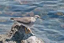 白腹海鹦,前趾间有蹼膜,后趾缺如。翅窄而短小,尾短。体羽黑白二色,雌雄羽色相似全部>>