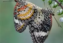 优红蛱蝶:翼展4.5-12厘米。是一种美丽的蝴蝶。色彩鲜艳,花纹相当复杂。前足相当退化,短小无爪。前翅R脉5条,常共柄。卵呈半圆球形。幼虫头上常有突起,体节上有枝刺,腹足趾钩1至3序中列式。蛹为垂蛹。全部>>