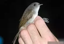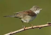 白喉林莺:体长10-13厘米,是一种类体型略小的莺鸟。喉白,上体灰褐或沙褐色,头顶较灰,贯眼纹黑褐或暗褐色。下体污白。耳羽深黑灰,胸侧及两胁沾皮黄色、褐色或淡粉红色。外侧尾羽羽缘白色。…全部>>