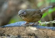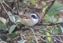 白颊噪鹛是雀形目噪鹛科噪鹛属鸟类,又称土画眉、小画眉、小噪鹃。成鸟额至头顶栗褐色,长眉纹、眼先和颊纹棕白色,眼后至耳羽深褐色,…全部>>