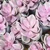 紫珍珠是景天科石莲花属的多年生肉质草本植物。植株中小型;叶片肉质,匙形,呈莲座状紧密排列;叶片粉紫色,叶缘呈粉白色,光照充足时颜色亮丽,不足时叶色会呈现深绿色或灰绿色,叶面光滑,被轻微白粉,…全部>>