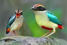 绿胸八色鸫:是雀形目八色鸫科的鸟类,共有12个亚种。体长为16-18厘米,体重65-69克。体型圆胖,尾短,腿长。头黑,上体绿色,两翼深色而具白色斑纹,头顶至后枕深褐,胸及腹部苹果绿,臀亮红。…全部>>
