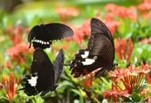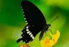 玉斑凤蝶Papilio helenus 别名白纹凤蝶,是凤蝶科凤蝶属美凤蝶亚属大型种类。雌雄同型;体翅皆黑色,后翅正面中室外有3个并列的白色斑,亚外缘有1列模糊的新月形红色斑,…全部>>