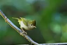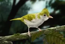 白腹凤鹛是绿鹃科、绿凤鹛属的小型鸟类,体长10-12厘米。上体从头到尾黄绿色,有短的羽冠,头顶微具黑色羽轴纹;眼先、眼周,耳羽和下体灰白色,尾下覆羽黄色。虹膜褐色或红褐色,上嘴浅褐色或肉褐色,…全部>>