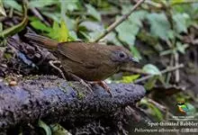 白腹幽鹛,是画眉科幽鹛属鸟类,共有4亚种。雕雄羽色相似。 上体从头到尾包括两题表面概为微椎褐色,两翅和尾沾更多红色。眼先和颚上灰褐色,耳覆羽褐色具族色羽轴纹,颈与背同色。额、喉白色具矢状黑斑,…全部>>