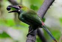 绿拟啄木鸟为鴷形目,须科,拟啄木属的一种。形较大拟啄木鸟略小,体长约260mm。头、颈及胸浅褐而具淡黄白色条纹;喉几为淡黄白色;身体余部草绿色。虹膜棕褐色,眼周裸露部黄色;嘴峰角黄色;跗跖和趾角黄…全部>>