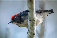 朱背啄花鸟:体重6-8克,体长81-97毫米。是一种小型的黑色及红色啄花鸟。雄鸟顶冠、背及腰猩红色,两翼、头侧及尾黑,两胁灰,下体余部白色。雌鸟上体橄榄色,腰及尾上覆羽猩红,尾黑。亚成鸟清灰色,嘴橘黄,…全部>>