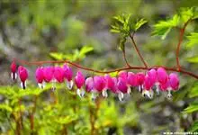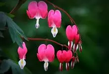 荷包牡丹 Fukuhara),是罂粟科荷包牡丹属的多年生草本植物,株高30-60厘米,具肉质根状茎;茎直立呈圆柱形;叶二回三出全裂,状似牡丹叶;总状花序顶生,基部为心形,花瓣紫红色至粉红色,稀白色,…全部>>