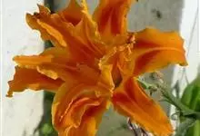 重瓣萱草 L. var. kwanso Regel),百合科萱草属植物。根近肉质,中下部有纺锤状膨大;花桔黄色,花被裂片多数,雌雄蕊发育不全。花被管较粗短,长2-3厘米;内花被裂片宽2-3厘米。…全部>>