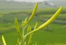 黄花菜 别名金针菜、柠檬萱草等,是阿福花科萱草属的多年生宿根性草本植物。根近肉质,中下部常有纺锤状膨大;叶7~20枚,长50~130cm,宽6~25mm;花葶长短不一,花梗较短,花多朵,…全部>>