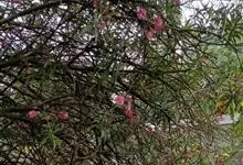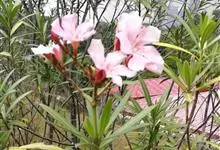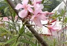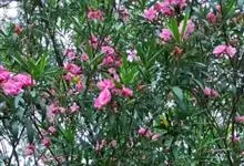 夹竹桃,又名红花夹竹桃、欧洲夹竹桃,是夹竹桃科夹竹桃属的一种常绿直立大灌木,枝条灰绿色,含水液。叶披针形,3叶轮生。聚伞花序顶生,花冠粉红至深红色,花冠漏斗状,有特殊香味。蓇葖果,圆柱形。种子长圆形,…全部>>