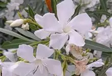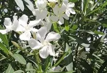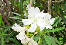 白花夹竹桃是夹竹桃科、夹竹桃属植物夹竹桃的栽培品种。常绿直立大灌木,枝条灰绿色;嫩枝条具稜,被微毛,老时毛脱落。叶3-4枚轮生,下枝为对生,叶面深绿,叶背浅绿色;侧脉纤细平行与中脉成直角;叶柄扁平,…全部>>