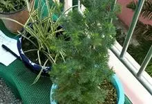 蓬莱松是天门冬科、天门冬属多年生丛生草本植物。宿存,圆柱形肉质根,纵截面为绿色和表面灰色。植株高可达3米。茎呈圆柱形或近四边形,底部木质化,具有灰色或灰褐色。幼嫩的茎在每个节上都被紫绿色鳞片包,…全部>>