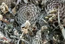瓦松,中药名。为景天科植物瓦松Orosta.chys fimbriataBerg.的干燥地上部分。夏、秋二季花开时采收,除去根及杂质,…全部>>