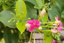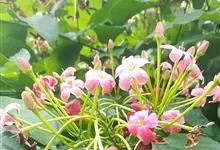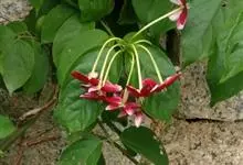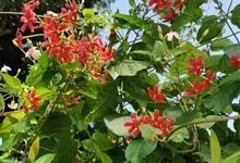 使君子 Jongkind)是使君子科、使君子属攀援灌木,叶对生,椭圆形,两面均被灰白色柔毛。穗状花序,倒挂下垂。花期夏秋。果有五棱,熟时黑色,种子白色。分布于印度、缅甸、菲律宾和中国。喜温润,深根性,…全部>>