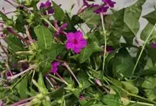 即紫茉莉,英文名:Four-o'clock,Marvel of Peru,为紫茉莉科、紫茉莉属多年生草本植物,一年生栽培。株高50~80cm。根粗壮,茎多分枝而散生。叶对生,卵形或心脏形。花数朵簇生…全部>>