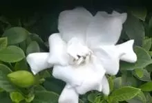 白蟾 Hara),茜草科,栀子属常绿灌木,是栀子的变种。株高1~2米,茎灰色,小枝绿色。单叶对生或3叶轮生,叶片革质,稀纸质,全缘,倒卵形或矩圆状倒卵形。花单生于枝顶或叶腋,花大,重瓣,白色具浓香。…全部>>