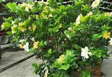 栀子花,花朵簇状约30枚瓣,奶油色,中心黄色;花径12cm;气味果香.全部>>