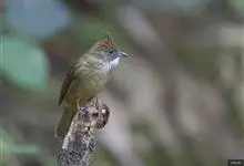 白喉冠鹎:体长20-25厘米。头顶红褐色,有长而细的羽冠、红褐色,头侧灰色。上体橄榄绿黄色,飞羽暗褐色,外翈茶黄色,尾下覆羽皮黄色。…全部>>