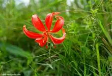 山丹是百合科百合属的多年生草本植物。鳞茎卵形或圆锥形,鳞片长圆形或长卵形,白色;叶散生茎中部,线形,边缘有乳头状突起;花单生或数朵成总状花序,花鲜红色,常无斑点,花被片反卷,…全部>>