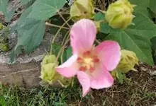 木芙蓉,锦葵科木槿属落叶灌木或小乔木。小枝上有细绒毛;叶片为卵状心形,托叶为披针形,常早落;花单生,花萼为钟形,花冠初为白色或淡红色,后逐渐变为深红色;果实为扁球形,有淡黄色的毛附着。花期8到10月。…全部>>