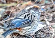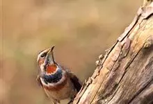 蓝点颏亦称“蓝喉歌鸲”,通称蓝靛颏儿。身体大小和麻雀相似,体长12-13厘米,体重17-18克。头部、上体主要为土褐色。眉纹白色。尾羽黑褐色,基部栗红色。颏部、喉部辉蓝色,下面有黑色横纹。下体白色。…全部>>