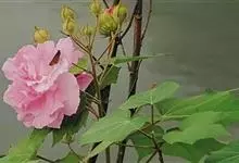 木芙蓉,锦葵科木槿属落叶灌木或小乔木。小枝上有细绒毛;叶片为卵状心形,托叶为披针形,常早落;花单生,花萼为钟形,花冠初为白色或淡红色,后逐渐变为深红色;果实为扁球形,有淡黄色的毛附着。花期8到10月。…全部>>